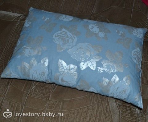 Подушечку сделала из настоящего пуха (не из пера), по размерам так, чтоб в кроватку спокойно ложилась. Очень мягенькая (мама моя специально по моей просьбе сильно ее пухом не набивала, чтоб она была именно мягкая и легкая. а не плотная и тяжелая), сама форму восстанавливает, и главное на ней не жарко)