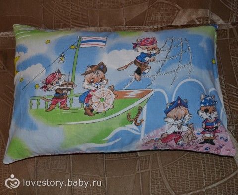 Наволочка правда пока у нас с котятами-пиратами (мама говорит, что не было более девчачей ткани, когда она шила), но позже бабушка нам еще сошьет наволочек))