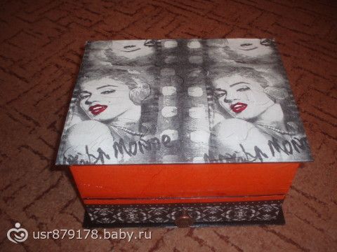 ура!!! я ее сделалашкатулка для косметики в технике картонаж( кто знает тот поймет) сделано все с нуля из обычных обложек от старых книг) преимущество в том что можно сделать нужного размера и в каком хочешь варианте!!! ну и вполне себе бюджетно, думаю в магазине такая стоила бы не дешево