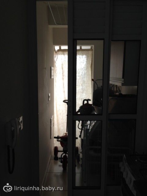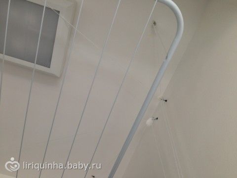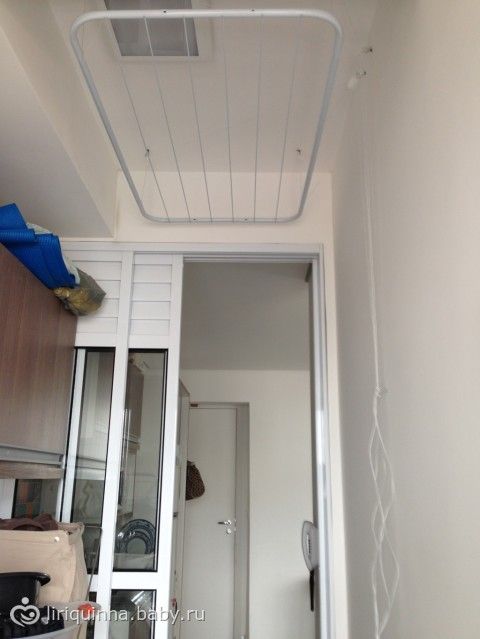 И в этом же закутке мы повесили сушилку. Такие сушилки я только в Бразилии встречала, они подвешваются под потолок на веревках.