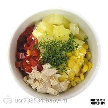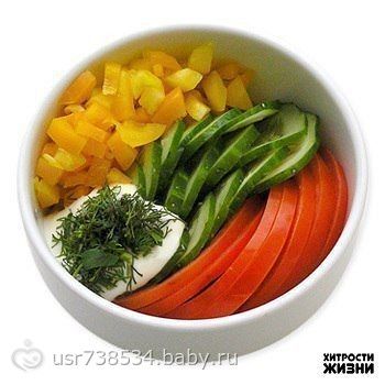 Решила я, девочки, не есть после шести вечера! А то за 4 месяца поправилась я на 5 кг! Ну голод, зараза, так и мучает по вечерам! Плюс я работаю до 5.30 вечера, прихожу домой, мужу ужин готовлю, а сама давлюсь слюной! Ну, ладно, думаю, буду есть салаты, чтоб совсем не помереть с голоду. И вот нашла простые салаты в интернете. Уже 4 день экспереметирую, готовится быстро, получается вкусно, и голод уталяет! Может кому-нибудь пригодиться на скорую руку