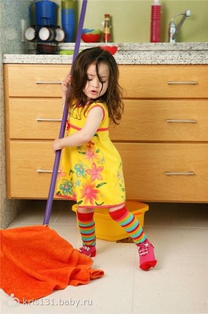 А теперь относительно мытья пола шваброй. Пока вы подметаете пол в кухне, дети надевают купальники. Бросьте на пол мокрые полотенца, и пусть детишки разъезжают по кухне на попе. Можете добавить немного детского шампуня вместо мыла. Помните: никакого идеала — только веселье! У вас будет чистый пол, а дети немного подурачатся. Им это придется по вкусу. А потом бросьте грязные полотенца и купальники в стиральную машину.