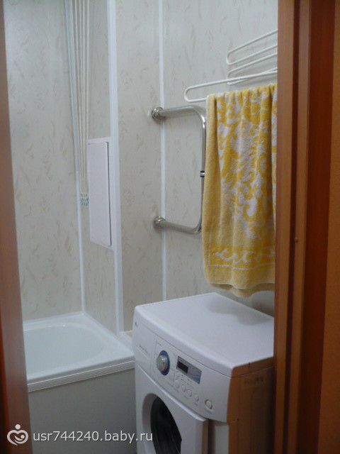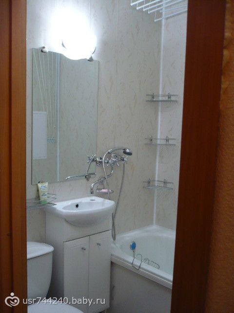 Ага, наверно, потому что у нее вообше не понять мне как туда все впихнуть.Она как то странно изогнутая и получается что стена выступает в комнату, и для кухни там такой малюсенький закуток… узенький.Ванна помоему такая же, ток унитаз стоит не как у тебя, а 'лицом' в ванну)
