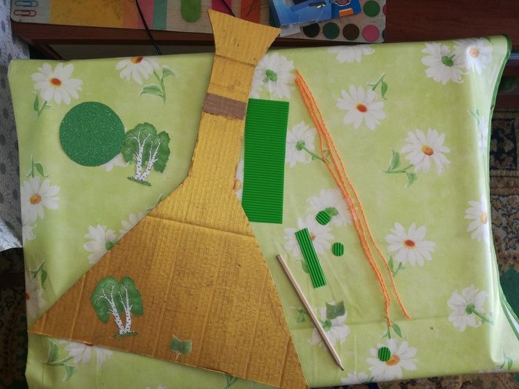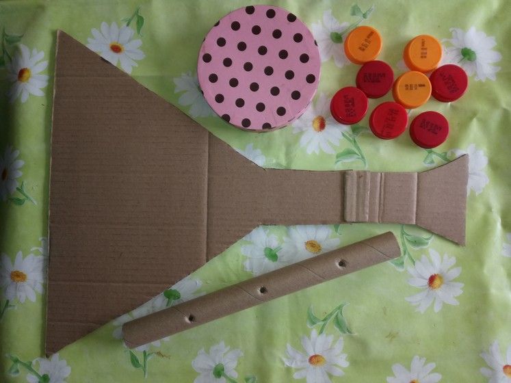 Продолжаю публиковать отчеты по летнему марафону «Пломбир» в инстаграм. Задание №25 «Музыка под небом» (инструменты своими руками). Мы решили сделать русско-народные инструменты из подручных материалов: балалайка- картон, бубен- крышка от коробки+крышки, дудочка-туба от фольги, маракасы- одноразовые ложки_киндеры+термонаклейки для яиц. покрасили картон.