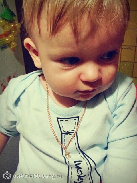 я из золота воспринимаю на детках только сережки, у нас серебро радированное (очень похоже на белое золото)… а так, отличная маленькая цепочка!!