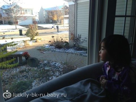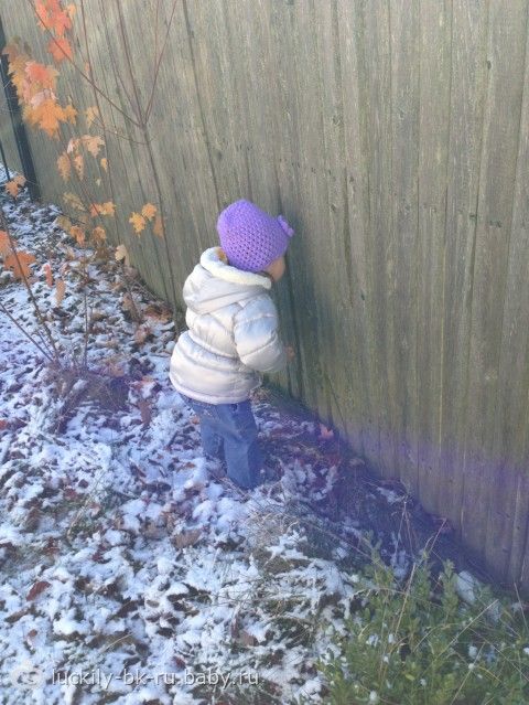 не особо ей понравилось снег трогать — мокрый и холодный, руки отряхивала, ботинки тоже постоянно вытирала и возмущалась что к ним снежок липнет))) перчатки мы так и не нашли — так торопились выйти пока не растаяло что забыли где они с прошлой зимы запрятаны