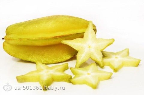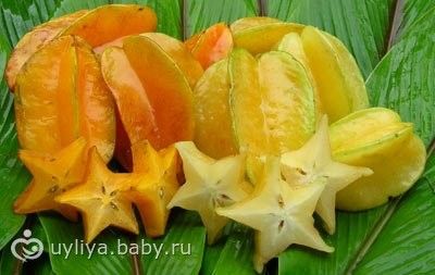 Плоды карамболы также известны как тропические звёзды, «старфруты», обычно жёлтого или жёлто-коричневого цвета. Название произошло потому, что разрезанные поперёк, они напоминают звёзды с 5 концами (иногда с 6 и даже с 7). Плоды хрустящи, сочны и бывают двух разновидностей: кисло-сладкие и сладкие с массивными ребристыми наростами, являются превосходным источником витамина С. Используют карамболу, в основном, для коктейльных украшений или украшения верхней части десертов. В больших количествах употребление этих фруктов может спровоцировать развитие почечной патологии или привести к нарушению солевого обмена в организме.