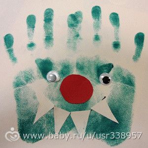 А из отпечатка руки можно сделать новогоднюю открытку с Дедом Морозом.