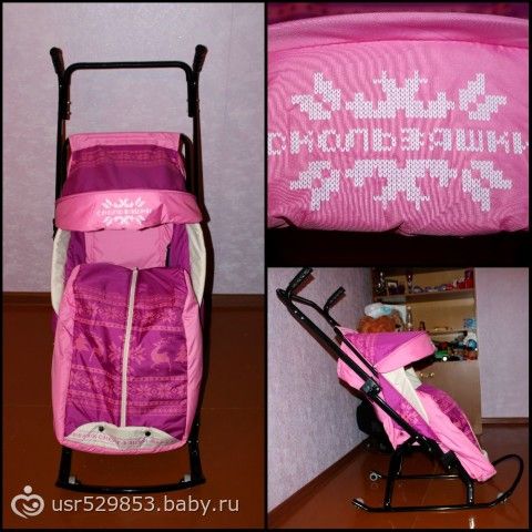 Мы вот такие купили в Карапузе за 4 тыс. И что вы думаете? ребенок просто отказывается в них сидеть!!! НИ В КАКУЮ! Орет, горло дерет, выгибается… у меня вобще паника была!!! Купила сходила уже обычные санки… но их мы еще не испытывали… ждем побольше снега… Пока ездим на коляске… Она у нас лето-осень… сугробы уже не вывезет…
