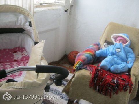 собрались спать на балконе, Мелисска ждет пока я одеваю кофту