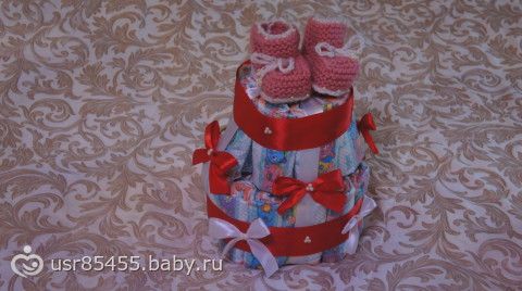 Это первый был, пока ждет хозяйку, а тут вот пригласили на кашу, решила другой сделать девчачий, пинетки тоже сама вязала, фото не очень, там все в бусинках) очень нежные такие) хозяйка тортика племянница моего Мишки) так что сын у меня теперь Дядя Миша))))