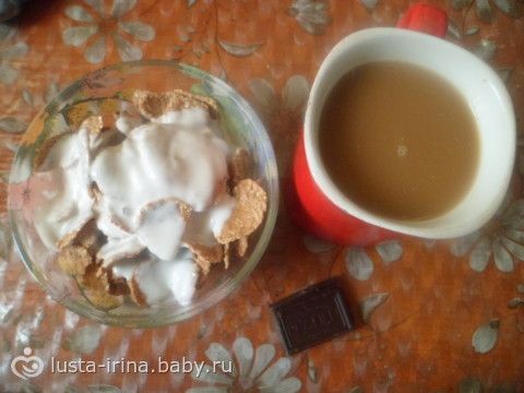 З- мюсли и изюмом и кофе с сливками и сахзамом