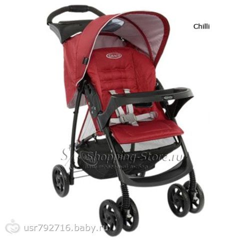 Прогулочная коляска Graco Mirage Plus со столиком — очень лёгкая и устойчивая коляска, которая непременно понравится заботливым родителям, поскольку она очень выгодна для прогулок с вашим малышом. Данная модель отлично подходит для лета и межсезонья. Складывается одной рукой с помощью поворотной рукоятки. Вместо бампера коляска оснащена съемным пластиковым столиком и кроме того в комплект входит навесной столик с крышкой для хранения мелких вещей. Спинку можно разложить вплоть до горизонтального положения. Просторное посадочное место, хотя ширина колесной базы данного изделия всего 49 см. В комплектацию входит чехол на ножки. Вес 7,5 кг.