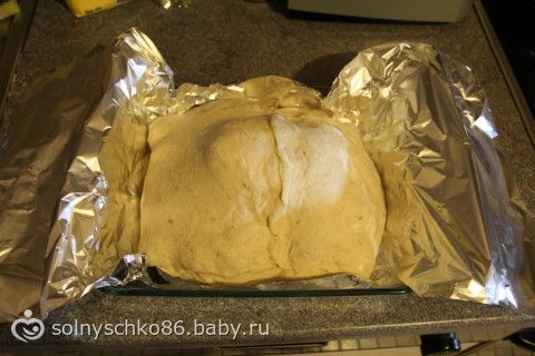 Выпекать в разогретой духовке часа 2 при 180 градусах. За 30-40 минут до окончания открыть фольгу, для образования корочки.
