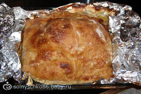Муж любитель курицы и всё время ищет новые рецепты, как он её уже не готовил, иногда я помогаю (как в этот раз — с тестом он не любит возиться) и в сливках, и в мешке, и фаршированную всякими всячествами, разве что в пиве ещё не делал — говорит пиво жалкоВот и в этот раз пришёл с ночной смены и новый рецептик в рутинах интернета нашёл.