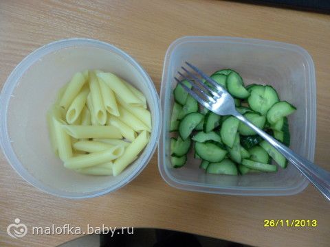 Обед: макароны твердых сортов и огурчик