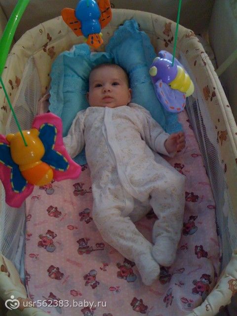 Здесь мы лежим в нашем манежи и смотрим на музыкальную карусель с игрушками. Ей она очень нравиться, под эту музыку мы очень быстро засыпаем.