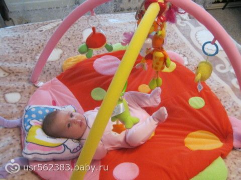 Это наш развивающий коврик. Ей он очень нравиться, особенно мы любим поднимать ножки и бить по игрушкам которые издают мелодию, а еще больше нам нравиться китенок со звездой, она часто ему что рассказывает.