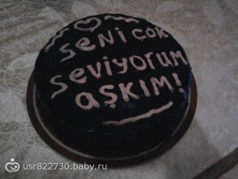 Пишу рецепт торта) Для теста — 6 яиц, 250 гр сахара, 150 гр слив масла, 3 ст ложки какао, 200 гр муки, у пакетик расрыхлителя. Для крема я обычно использую пакетик крем шанти (взбитые сливки), 1 ст молока для его разведения и немного кофейного ликера. Но в оригинале рецепта кажется сметанный был. Для глазури — 100 гр слив масла, 6-7 ст ложек сахара, 4 ст ложки какао, 6 ст ложек молока. Приготовление занимает 2 часа, все очень просто. Первым делом растапливаю масло, которое на тесто, и пока оно охлаждается, включаю печку нагреваться на 175-180 градусов и готовлю тесто. Взбиваю яйца до достаточно пышного состояния, всыпаю сахар, продолжая взбивать. В другую миску просеиваю муку, разрыхлитель и какао, смешиваю венчиком с яйцами-сахаром и взбиваю. Добавляю охлажденное масло и снова взбиваю. Выливаю на смазанную маслом форму (она должна быть не очень маленькой, потом гляну диаметр своей, вообще идеально подходит) и в печку минут на 45-50. Никогда не проверяю готовность, всегда пропекается идеально и не сухой, не нужно пропитывать. Пока корж в печке, готовлю крем, взбиваю пакетик крем шанти с молоком до густого состояния (молока лучше взять чуть меньше стакана, в принципе крема получается много, остается лишний, если весь пихать, не очень вкусно будет), добавляю немного ликера (а иногда и много, не испортится)), взбиваю и ставлю в холодильник. Потом готовлю глазурь, это самая вкусняшка во всем торте)) Растапливаю маслона водяной бане, продолжая нагревать добавляю сахар и какао (какао заранее тоже просеиваю и смешиваю с сахаром, чтоб потом просто высыпать все сразу), немного перемешиваю и добавляю молоко, потом минут 10 постоянно мешаю, не нимая с огня. Потом отставляю в сторону охлаждаться (но совсем на холод выставлять не надо, а то застынет до нанесения на торт и потом некрасиво будет). Когда корж готов, вытаскиваю, разрезаю пополам и жду, пока остынет. Нижний мажу кремом и накрываю сверху второй половинкой. Потом сверху и по бокам обмазываю глазурью. Если остается крем, время и желание, то потом еще кремом чего-нибудь украшаю сверху или пишу) И ставлю в холодильник, на следующий день уже можно есть, или вечером, если утром сделала. Мой пищит с этого торта, гости тоже заценили)) Просто, быстро и горааааздо вкуснее турецких магазинных тортов, где один крем. С кремом кстати можно поэкспериментировать и мне потом написать)) А вот и некоторые из вариантов этого торта)) Состав один, только украшение разное)