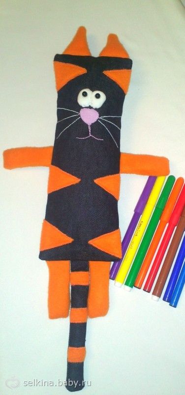 Пенал для фломастеров на молнии из джинсовой ткани и флиса :