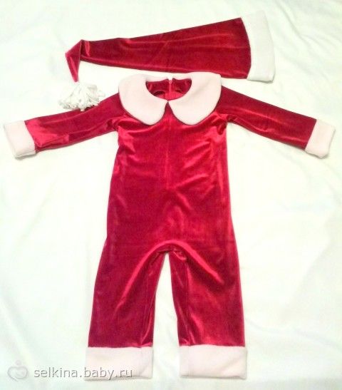 Костюм новогодний Санта-клауса из красного бархата, отделан белым односторонним микрофлисом: