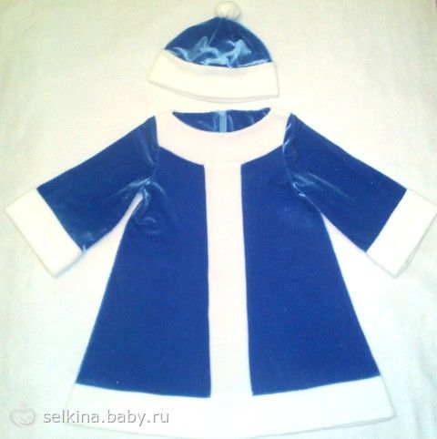 Новогодний костюм снегурочки из бархата голубого, с отделкой из микрофлиса одностороннего, с шапочкой — шестиклинкой: