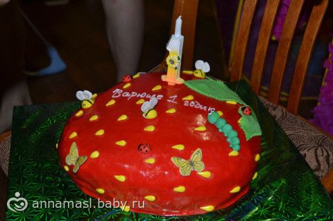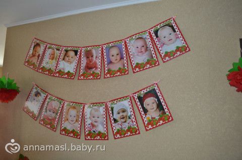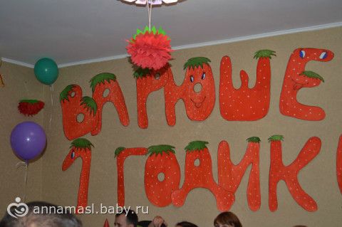 у нас был день рождение Ягодки, заказывала костюм клубнички, много всякой атрибутики с клубничками (плакаты, телеграмму, наклейка на коробку с собраннми дочиными вещичками, туда полоила соску первую, носочку, любимую погремушку, костюмчик в котором с роддома забирали, дневник, который год вела, каждый день записывала, анкеты гостей, еще заказывала шпажки для украшения стола, приглашения, гостям подарочки магниты + баночка с вареньем правдо не клубничным а малиновым с этикеткой, (подарки разыгрывались) растяжку по месяцам, колпачки), торт в виде клубнички. программу делала, ну в основном собирала много и по ходу и настроению гостей делала конкурсы, викторины. Фото плакатов у мужа на компе не могу скинуть, их было 3 штуки, на кого похожа, всем когда то был год (все гости в возрасте 1 год, но конечно не получилось, чтобы прям все на фото был 1 год, просто маленькие, и плакат вес, рост, достижения), запускали 1 небесный фонарик, ах да еще и конечно слайд шоу.