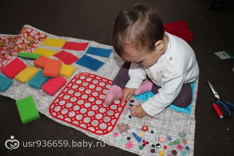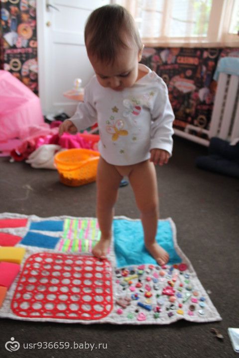 Мы много говорим о моторике пальчиков (рук), о том, как полезно развивать ее и прочее… а про ножки — не так часто, а ведь это тоже очень нужно. Сделала массажный коврик для дочкиных ножек.
