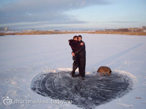 это мы с мужем еще встречались, пошли гулять собачкой… и тут он решил сделать мне сердце! сказал дорогая это тебе!!! и под нашим балконом его хорошо было видно, было очень приятно когда он сам его делал