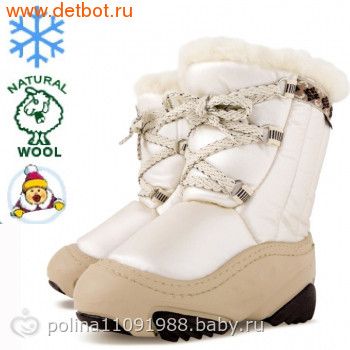 Одевать на сухую ножку, с носками НЕ натуральных материалов, термо или флис, а если в санках гуляете, то валенки лучше, т.к. мембрана для более активных прогулок