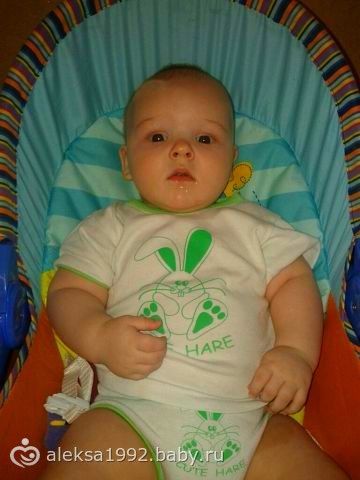 Вот нам уже 4 месяца!!! Вес наш 9300 кг, а рост 67 см.Большая часть нашего гардероба ушла в пакеты, многое, так и не надели! Умеем мы многое: переворачиваемся во все стороны, с любого положения; берем игрушку и активно играем(уже есть любимые)