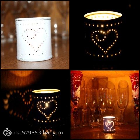 Делается из обычной железной баночки из под детского питания. Прокалывала дырочки толстой иголкой (пару раз молотком по пальцу бабахнула). Саму баночку можно было покрасить краской из балончика, но у меня ее не было, и я просто обклеила белой бумагой. И вуаля