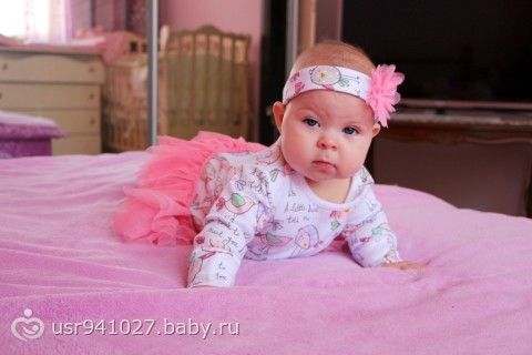 Милашка пытается уже встать на четвереньки и делает «чикательные движения»)))))туда-сюда )))) все хватает, все ей интересно, схватит в ручку и начинает со всей силы трепать) смешная такая)