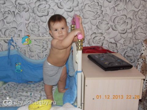 Толстопопый научился стоять. Причем конкретно так. Вцепится в кроватку и стоит минут по 10-15. За диваны, за кресла, за ноги, за тумбочки и комоды держится. Орет — если забывает, что ноги поднять надо)