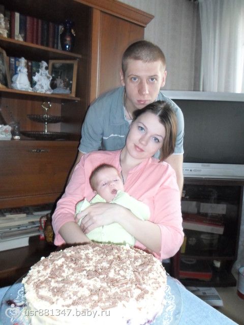 А вот нам и месяц)). Бабуля спекла тортик. Очень уж хотел он его попробовать, но, увы, обошелся молоком)
