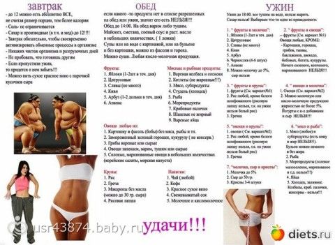 короче говоря, на завтрак до 12-00 можно кушать ВСЁ!!!на обед определённые продукты указаные в таблице