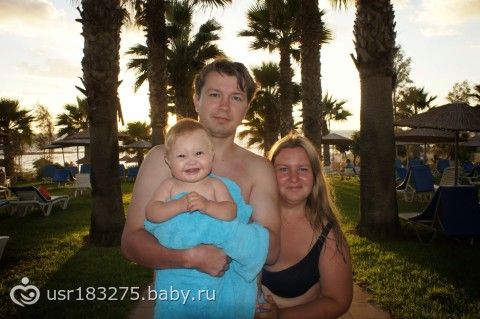 Хоть и поздно, но решила написать как мы съездили отдохнуть на Кипр. Были мы там с 8 сентября по 21 октября. Все очень понравилось! Переживала как Настюшка перенесет перелет и акклиматизацию. Перелет 3,5 часа из них когда летели туда она поспала час, а обратно 3 часа, не плакала вообще. На взлет и посадку конечно же давала ей грудь. Акклиматизации я тоже не заметила Каждый день ходили на море, купались ( вода сначала была 28, потом 24-25), на солнце Настюшку старалась не держать и каждый день мазала кремом (кстати очень понравился крем от солнца Chicco 0+).