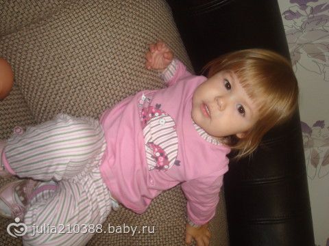 Аленка конечно большая уже стала, очень характерная в папу)) но и послушная! Говорит все слова почти, всё знает как называется, иногда мы сами в шоке откуда она это знает. Уже начинает складывать слова и склонять, говорит: люблю маму, дай конфету, покорми птичку и т.д.) Умничка моя!!!