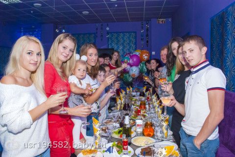 Дома решила ничего не делать, гостей много, времени на готовку нет. Сняли зал в кафе. Кирюшка был в восторге. Столько народу, игрушки., внимания! С 6 часов до 12 бегал как угорелый(хорошо что научились ходить, а то бы я с ума сошла!!!)