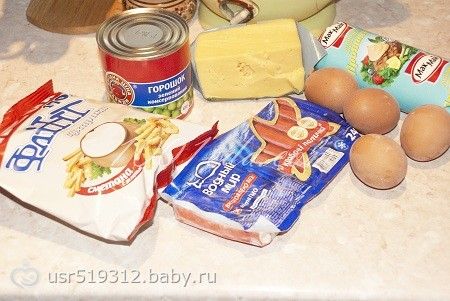 Чтобы приготовить слоеный салат с крабовыми палочками и сухариками, вам понадобится: