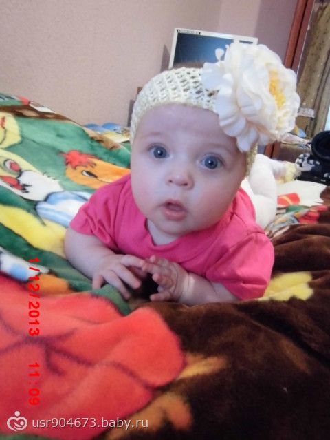 нам пока пяти еще нет, будет только 8-го 4 мес.зао мы с 2.5 переворачиваемся на бок и на живот уже полным ходом, только отвернешься уже на животе… и ползти пытаемся, но когда лбом упираемся куда нибудь в падушку например начинаем психовать… у меня есть в журнале моем тема там видно как ползает… А так вы молодцы, умнички..