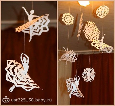 СНЕЖИНКИ-БАЛЕРИНКИ. Очень известная и популярная сейчас новогодняя поделка. Снежинки-балеринки, новогоднее украшение, мобиль. Балеринки вращаются при любом движении воздуха, будто кружатся в танце!