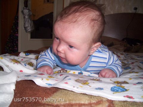 Сегодня нашему пончику 12 недель)вес 7200.У мамы ручки отрываются спинка не разгибается! Даня теперь если ему что то не нравится -нудит.это очень весело смотрится: брови насуплены, щёки надуты и бормочет что есть мочи «аглааглаглагла, алялялягугагы».если к нему не прислушиваются то начинается скандалище)))При виде мамы и папы у сына комлекс оживления.Улыбается, агукает, ручками ножками машет.На живот переворачиваться даже не пытается наш ленивый пирожок и погремухи не берёт сам.Спит так же по 20часов в сутки.
