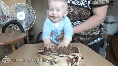 это мы с мамой дали Жорке повеселиться с тортиком))))