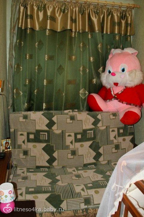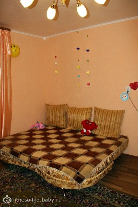 А это Викина маленькая комната-вагончик. На против входа кровать а по бокам шкаф и диванчик.