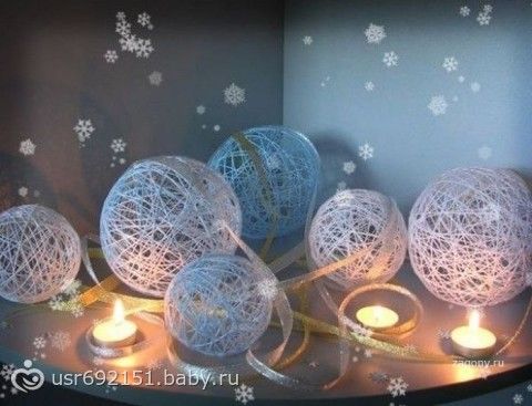надуваешь шар воздушный, берешь нитки нужного цвета, обычные для шитья нитки, и наматываешь на шар на воздушный и обмазываешь все клеем, который не пожелтеет, нормальный возьмите, главное когда наматываете на шар нить, оставьте пространство для того, что когда высохнет клей через пару часов, проколоть шар и высунуть его из дырочки