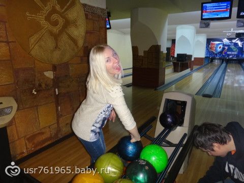 В пятницу ганяли… малому не нра и вместо того что бы хоть пару шаров кинуть ходила с ним по кафешке и по холу… Мужики мои отрывались...