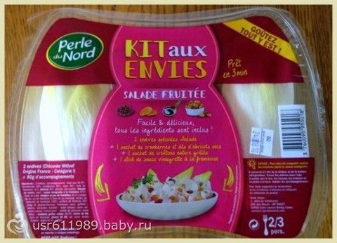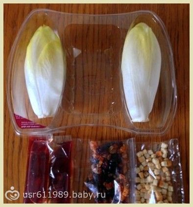 Верно. Не знала. Но купив, не прогадала :) Да, соглашусь с вами, Екатерина, при нынешнем отсутсвии дефицита, легко можно подобрать все ингридиенты и сварганить на скорую руку такой салатик. Как потом оказалось, в продаже есть еще один вариант — Salade Tradition — традиционный салат из эндивия с грецкими орехами, изюмом, поджаренными гренками, и горчичный соус винегрет. Тоже ням-ням :))