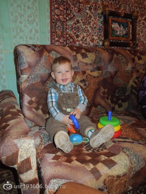 — из игрушек любит мячи, собирает пирамидку, но больше любит ее разбирать и кидать колечки с дивана. и вообще с дивана он любит кидать все, что под рукой, даже мой телефон и пульт.ррр!!! чувствую, такими темпами когда-нибудь полетит мой ноутбук. катает машинки, все еще гремит погремушками, юлу мне дает крутить, сам еще не может, на каталке сам еще не катается, но иногда садится, играется в игрушки из киндеров, любит перекладывать из одной тары в другую разные вещи, особенно мелкие (киндеры, конфеты, мячики), а потом их же бросать с дивана.
