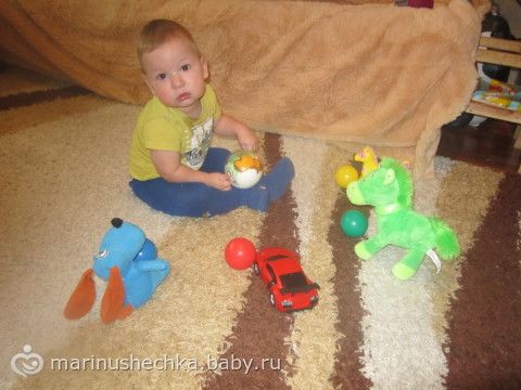 За этот месяц Арсений научился более-менее уверенно топать, но почему-то все равно он предпочитает ползать. Т.е если плюхнулся на попку, он не встанет идти дальше, а поползет. Может дойти из одной комнаты в другую, но все это настолько аккуратно и со страхом(( хотя первые шаги сделал еще 1,5 месяца назад. Что-то мы никак не расходимся...